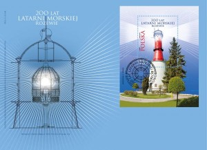 Na znaczku: Na znaczku pocztowym w bloku został przedstawiony wizerunek Latarni Morskiej Rozewie oraz stylizowane promienie światła. Po lewej stronie bloczku pionowo napis: ARCHIWUM A. ŁYSIEJKO. Na znaczku pionowo od dołu ku górze napis: A. GOSIK oraz PWPW SA 2022, a przy nich czerwoną czcionką napis POLSKA. Nad latarnią napis: 200 LAT LATARNI MORSKIEJ ROZEWIE. W lewym dolnym rogu znaczka jego nominał 15,30 zł