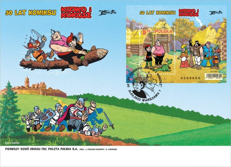 Koperta FDC 50 lat komiksu Kajko i Kokosz 2022
