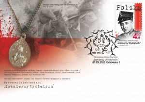 Koperta FDC Narodowy Dzień Pamięci Żołnierzy Wyklętych 2022 r. - koperta FDC z pierwszego dnia obiegu ze stemplem okolicznościowym o ograniczonym nakładzie kolekcjonerskim.