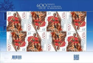 600-lecie parafii św. Floriana w Brwinowie 2023 r. - arkusz znaczków kolekcjonerskich o ograniczonym nakładzie znaczka 160 000 sztuk, stan zachowania nowy