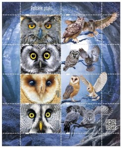 Znaczki Polskie ptaki sowy arkusz 2015