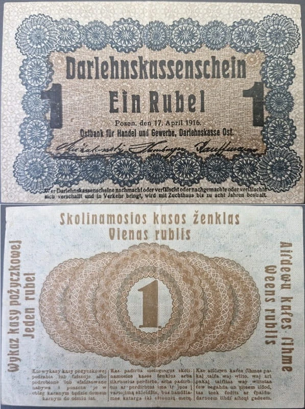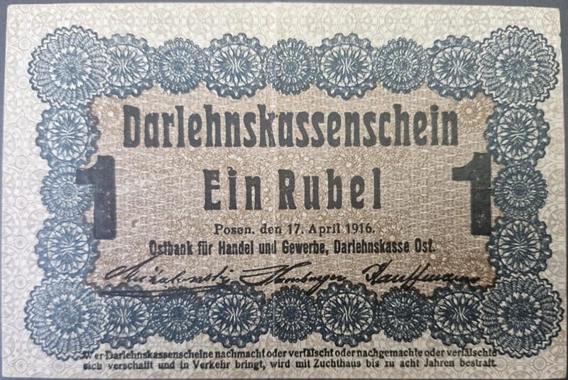Banknot 1 rubel 1916 Okupacja terenów wschodnich Poznań