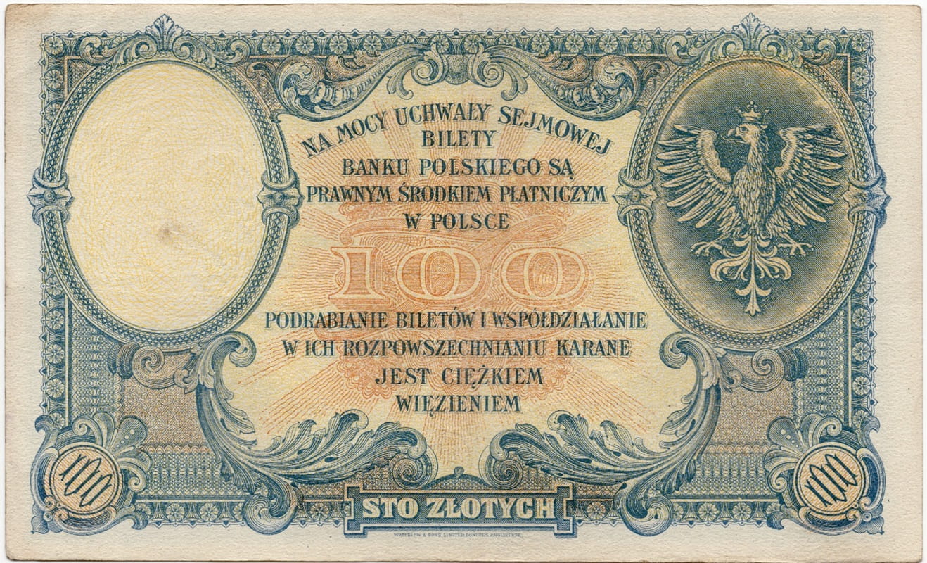 Rewers banknotu 100 zł 1919