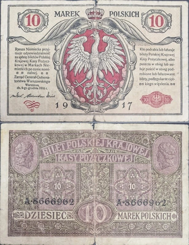 Banknot 10 marek polskich 1917 r.