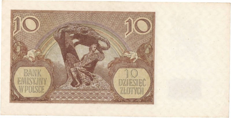 Banknot 10 złotych 1940 r. - Banknot emitowany w okresie Generalnego Gubernatorstwa przez Bank Emisyjny w Polsce.