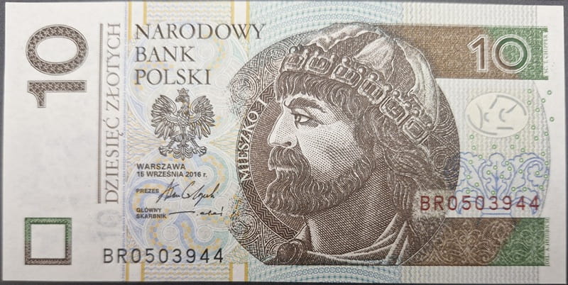 Awers banknotu 10 zł 2016 BR