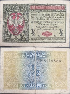 Awers banknotu 1/2 marki polskiej 1916