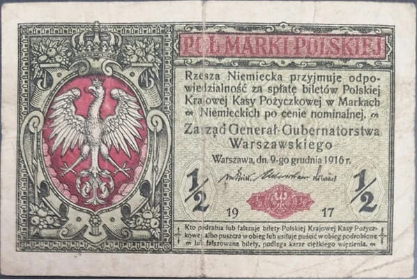 Banknot 1/2 marki polskich 1916 generał