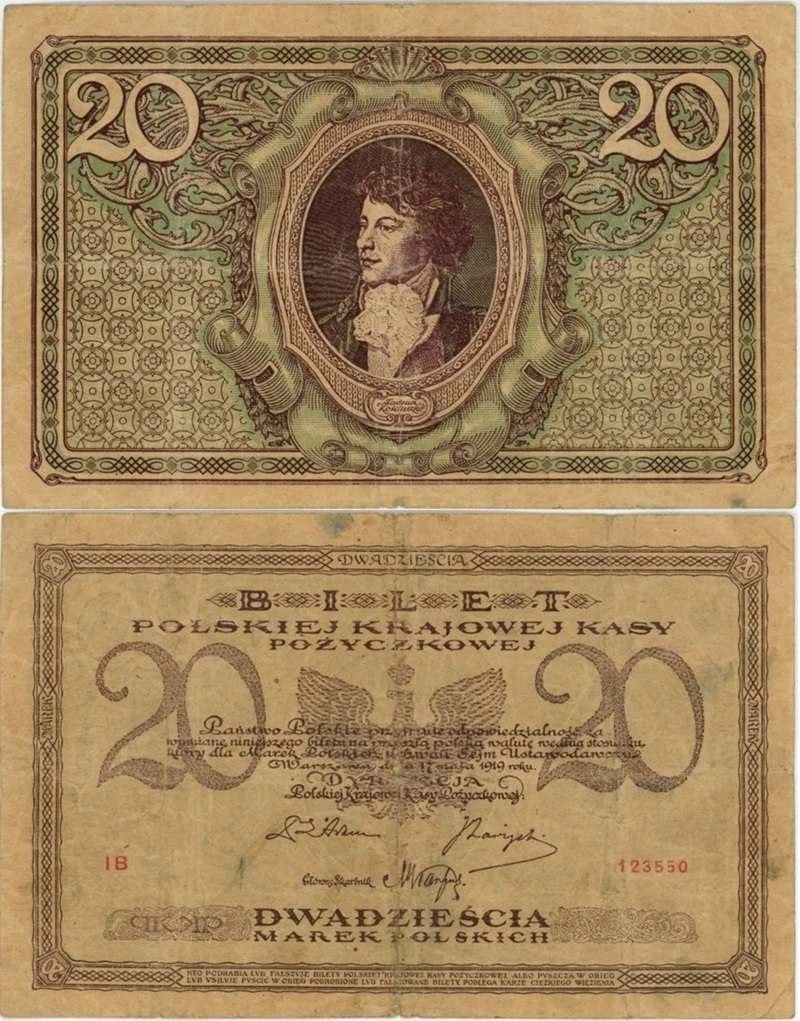 Banknot 20 marek polskich 1919 r. - Banknot obiegowy