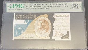 20 zł Fryderyk Chopin 2009 r. PMG 66 EPQ - banknot w gradingu