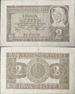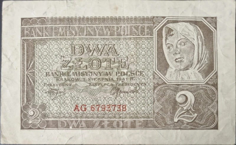 Banknot 2 złote 1941 - Banknot emitowany w okresie Generalnego Gubernatorstwa przez Bank Emisyjny w Polsce.