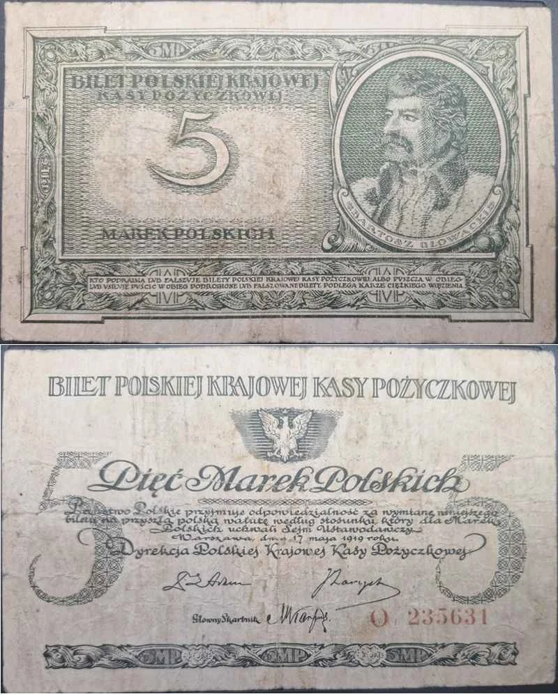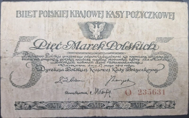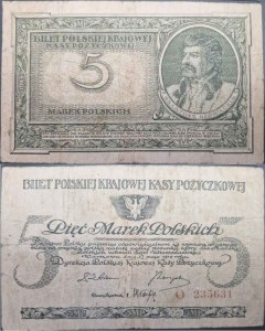 Banknot 5 marek polskich 1919 r.