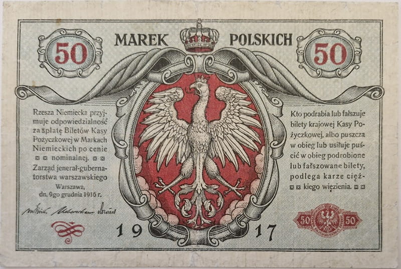 Banknot 50 marek polskich 1917 r.