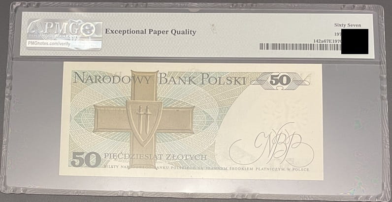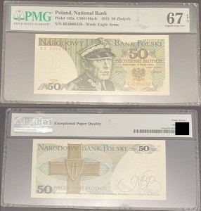 Banknot 50 złotych 1975 PMG 67 EPQ Niski numer 359