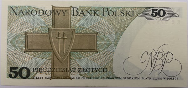Na rewersie banknotu lewym dolnym rogu nominał banknotu 50 zł. U dołu banknotu napis: BILETY NARODOWEGO BANKU POLSKIEGO SĄ PRAWNYM ŚRODKIEM PŁATNICZYM W POLSCE.