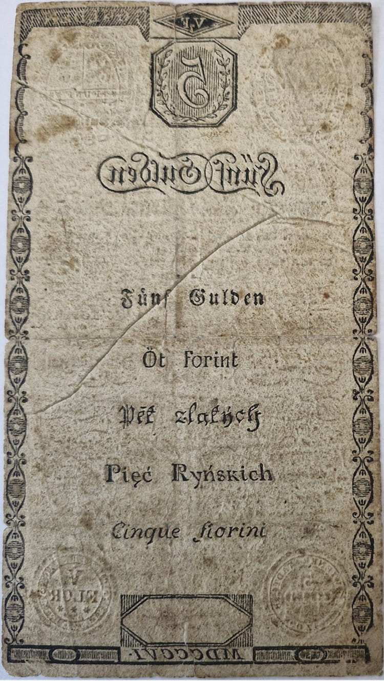 Banknot 5 guldenów 1806 5 ryńskich zabór austriacki Galicja