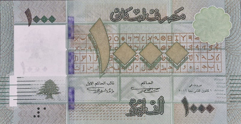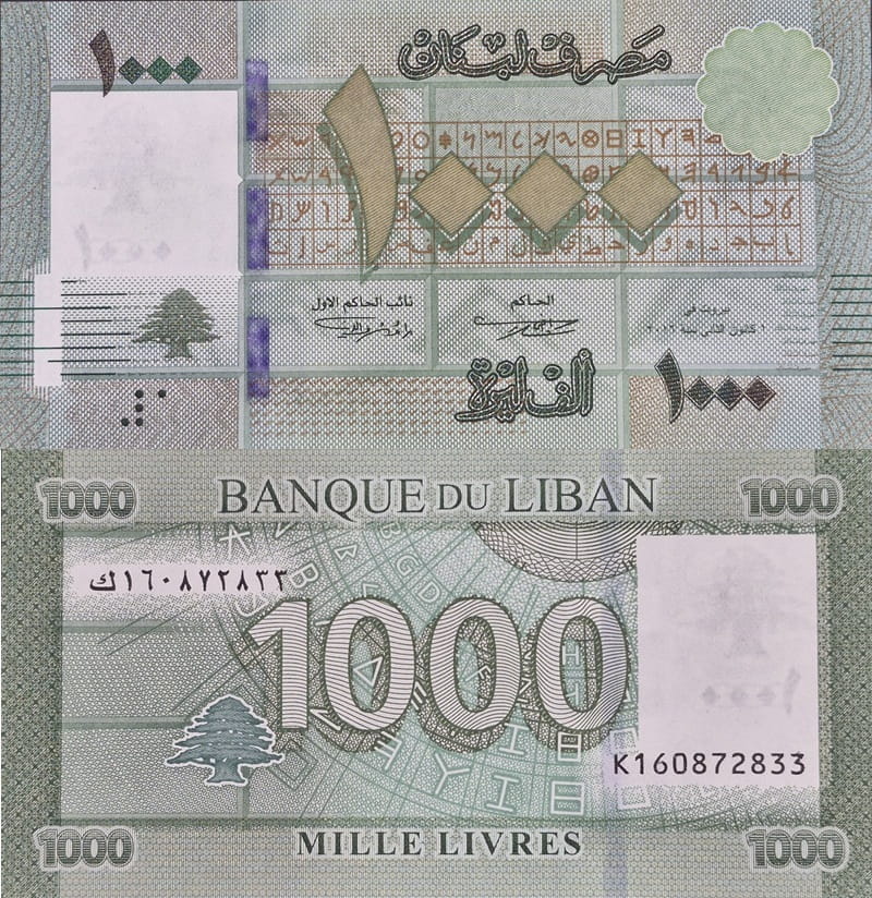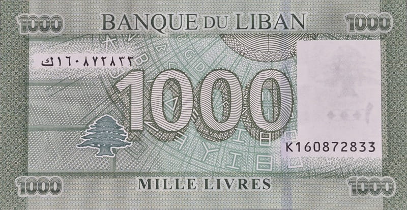 Awers banknotu 1000 livres Liban