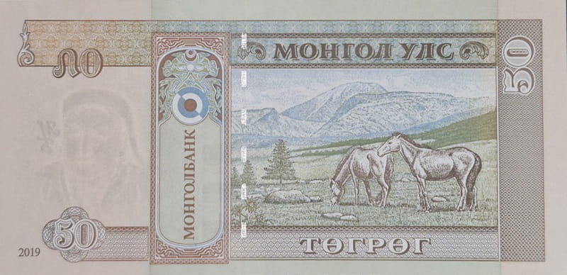 Banknot 50 Tugrik Mongolia z kategorii obiegowe banknoty świata kontynent Azja, emitent Narodowy Bank Mongolii rok emisji 2019, materiał papier, stan zachowania UNC