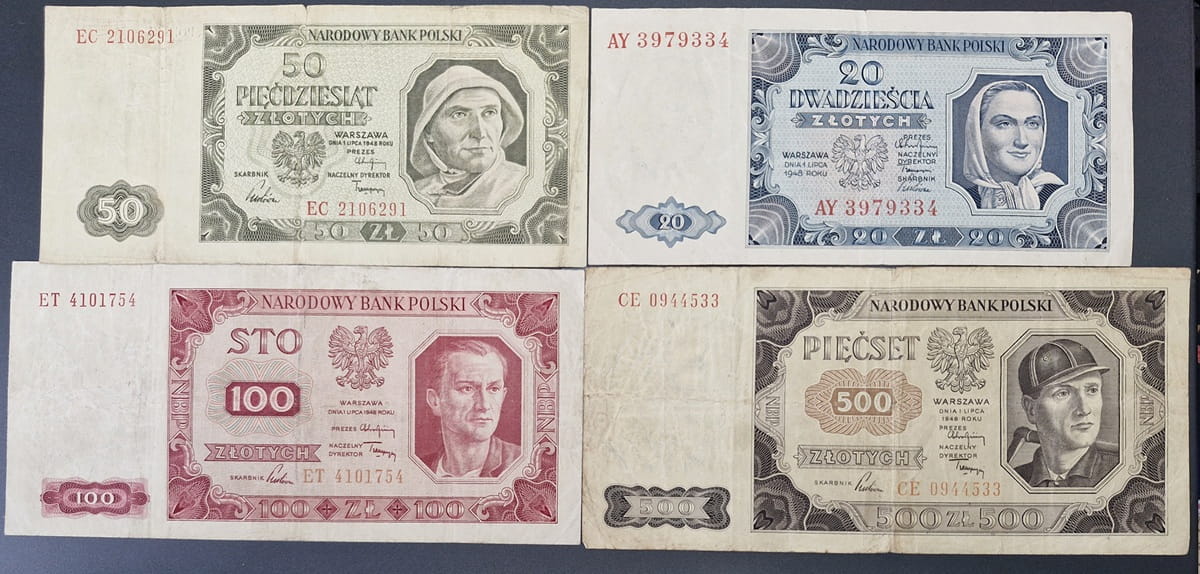 Zestaw banknotów obiegowych 1948