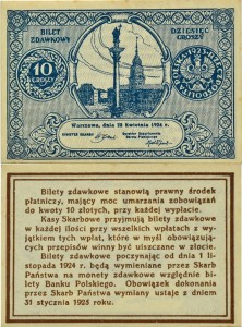 10 groszy 1924 r. - Bilet zdawkowy z okresu międzywojennego.