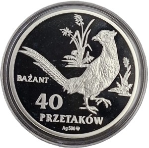 Na grafice bażant oraz nominał 40 przytaków. Pod nim Ag500 i znak Menniczy Polskiej S.A. m/w