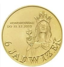 Na grafice wizerunek królowej Jadwigi z prawej strony. U góry po lewej stronie dużymi literami napis w dwóch rzędach: Honorowane do 31.12.2010. U dołu monety dużymi literami napis: JADWIŻEK, a przed nim nominał 6