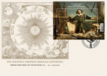 550 rocznica urodzin Mikołaja Kopernika 2023 r. - koperta FDC pierwszego dnia obiegu ze stemplem okolicznościowym, o ograniczonym nakładzie kolekcjonerskim