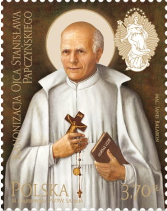 Kanonizacja Ojca Stanisława Papczyńskiego 2016 r. - koperta FDC z pierwszego dnia obiegu ze stemplem okolicznościowym i znaczkiem kolekcjonerskim w nakładzie 180 000 sztuk, nakład koperty znacznie niższy, stan zachowania nowy
