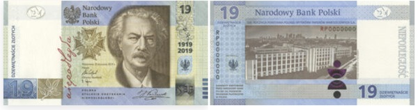 Cecha szczególna: Jedyny polski banknot kolekcjonerski o nominale 19 zł; pasek holograficzny okienkowy.