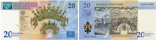 9 emisja — 20 zł 300-lecie koronacji Obrazu Matki Bożej Jasnogórskiej 2017