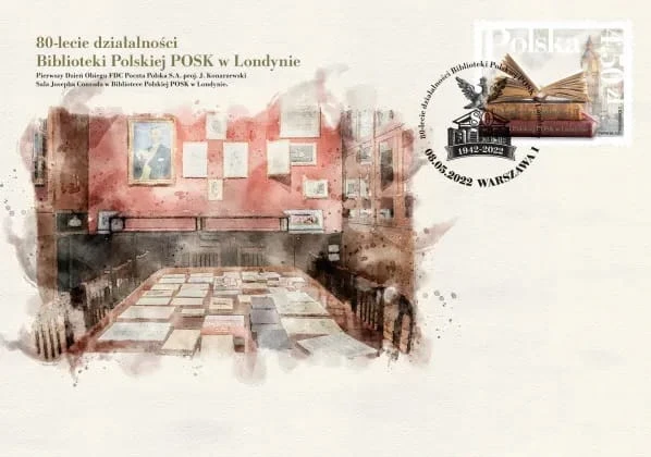 Koperta FDC 80-lecie działalności Biblioteki Polskiej POSK w Londynie 2022