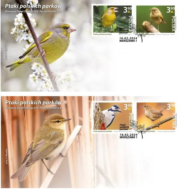 Ptaki polskich parków 2024 r. - Kopert ze stemplem okolicznościowym. Limitowany nakład kolekcjonerski.