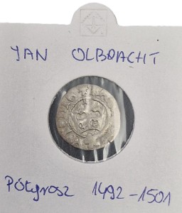 Moneta Półgrosz Jan Olbracht 1492-1501 r.