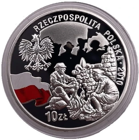 10 zł 100. rocznica Harcerstwa Polskiego 2010 r. - Srebrna moneta kolekcjonerska NBP. Moneta w kapslu ochronnym.