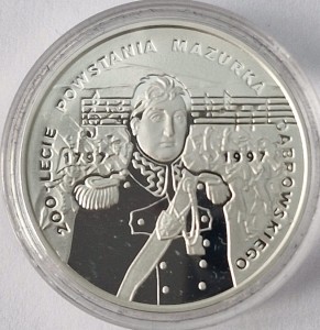 10 zł 200-lecie Powstania Mazurka Dąbrowskiego 1996 r. - srebrna moneta kolekcjonerska NBP - Narodowy Bank Polski. Moneta w kapslu ochronnym.