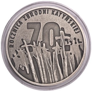 10 zł 70. rocznica Zbrodni Katyńskiej 2010 r. - Srebrna moneta kolekcjonerska NBP. Moneta w kapslu ochronnym.