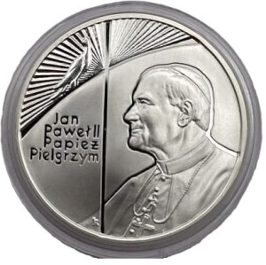 10 złotych Jan Paweł II papież pielgrzym 1999 r. - srebrna moneta kolekcjonerska, producent Mennica Polska S.A., temat Jan Paweł II, stempel lustrzany, moneta w kapslu ochronnym, stan zachowania L/L