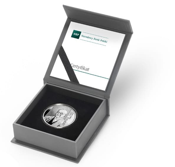 10 złotych Leopold Caro 2020 r. - srebrna moneta kolekcjonerska NBP, producent Mennica Polska S.A. z serii Wielcy polscy ekonomiści, moneta w kapslu ochronnym w pudełku z certyfikatem, stan zachowania menniczy
