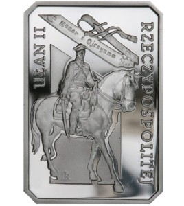 Na rewersie wizerunek ułana na koniu. Po lewej stronie pionowy napis w górę: Ułan II, po prawej napis pionowy w dół Rzeczpospolitej