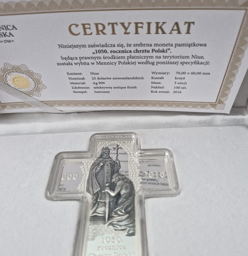 25 dolarów 1050 rocznica Chrztu Polski 2016 nakład 100 sztuk 5 uncji