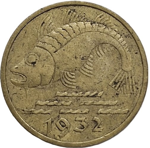 Na awersie u góry stylizowany wizerunek ryby dorsza, poniżej stylizowane linie fal w trzech rzędach. U dołu monety rok jej emisji 1932