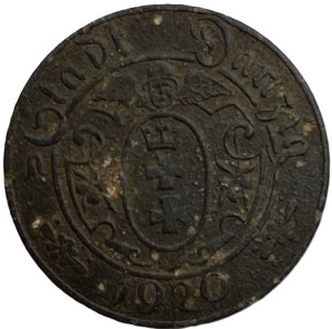 10 fenigów 1920 r. - moneta obiegowa Wolnego Miasta Gdańsk, stempel zwykły, metal cynk, stan zachowania 3/-3, real foto
