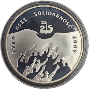 10 zł 25-lecie NSZZ Solidarność 2005 r. - Srebrne monety kolekcjonerskie NBP (Narodowy Bank Polski). Moneta w kapslu ochronnym.