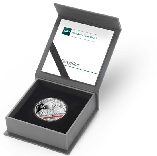 10 złotych Mieczysław Dziemieszkiewicz "Rój" 2020 r. - Srebrna moneta kolekcjonerska, emitent NBP Narodowy Bank Polski, producent Mennicza Polska, z serii Wyklęci przez Komunistów Żołnierzy Niezłomni. Moneta w zestawie z pudełkiem i certyfikatem, stan zachowania menniczy