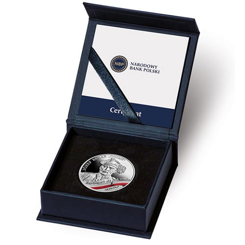 Srebrna moneta kolekcjonerska NBP - Narodowy Bank Polski, producent Mennica Polska S.A. z serii Wyklęcie przez Komunistów Żołnierze Wyklęci, stempel lustrzany, kolorowa emalia, pudełko i certyfikat