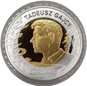 Moneta upamiętnia Tadeusza Gajcego (1922–1944) – poetę i żołnierza Armii Krajowej, jednego z przedstawicieli pokolenia Kolumbów. Zginął podczas Powstania Warszawskiego, pozostawiając po sobie znaczący dorobek literacki będący świadectwem tragicznych losów młodego pokolenia w czasie wojny.