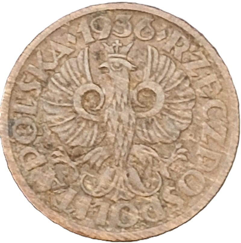 1 grosz 1936 r. - moneta obiegowa z okresu międzywojennego.