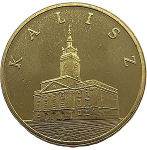Na rewersie w jej centrum widnieje stylizowany wizerunek ratusza w Kaliszu. U góry monety przy jej krawędzi półkolem napis dużymi literami: Kalisz