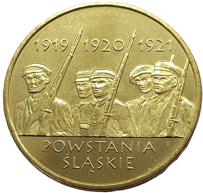 2 złote Powstania Śląskie 2011 r. - moneta okolicznościowa 2 złote Nordic Gold NG, producenta Mennica Polska S.A., temat indywidualny, stempel zwykły, moneta w kapslu ochronnym, stan zachowania 1/-1