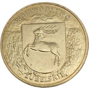 2 zł Województwo Lubelskie 2004 r. - Moneta okolicznościowa NBP z serii Herby Województw Nordic Gold. Moneta w woreczku strunowym.